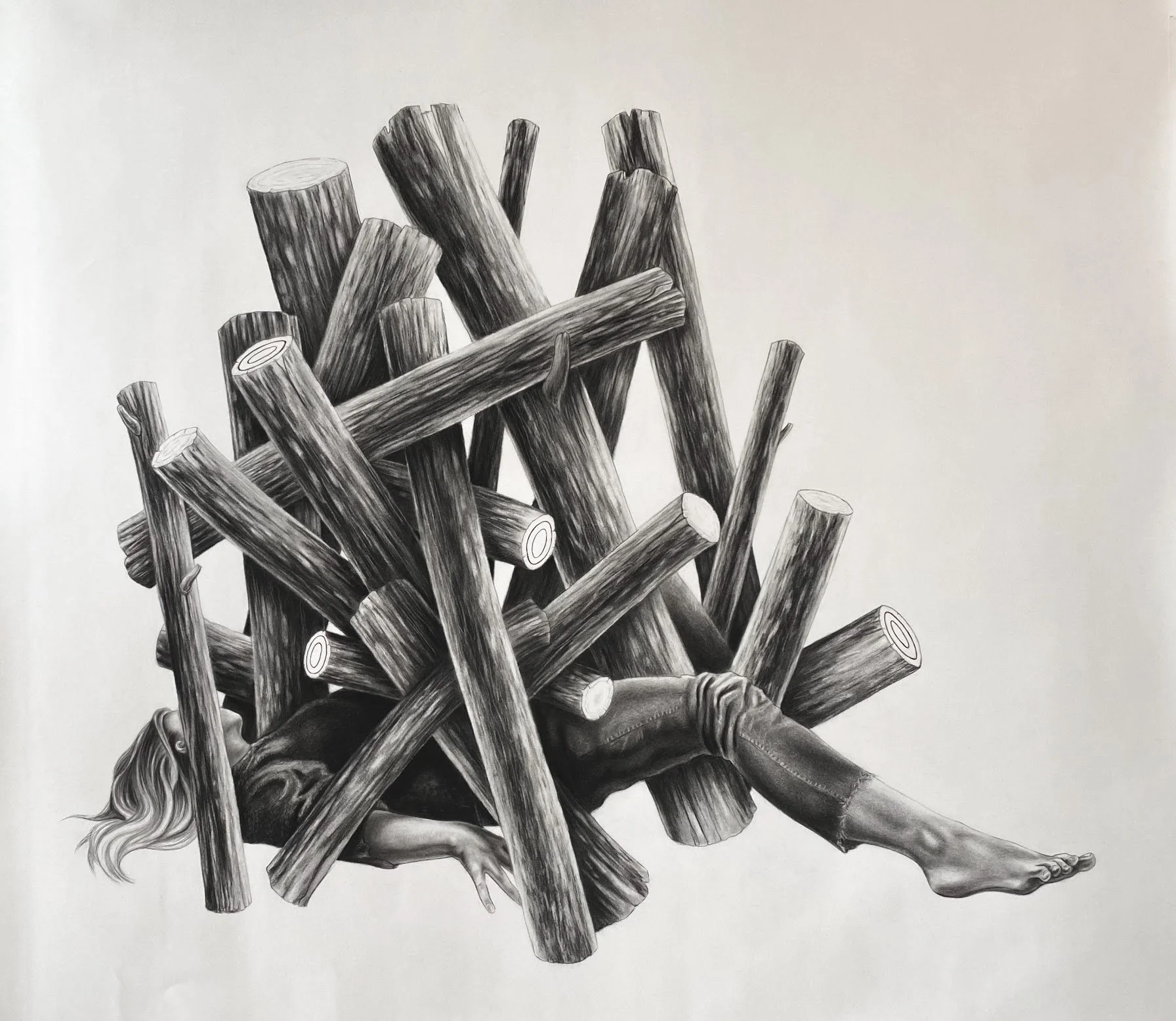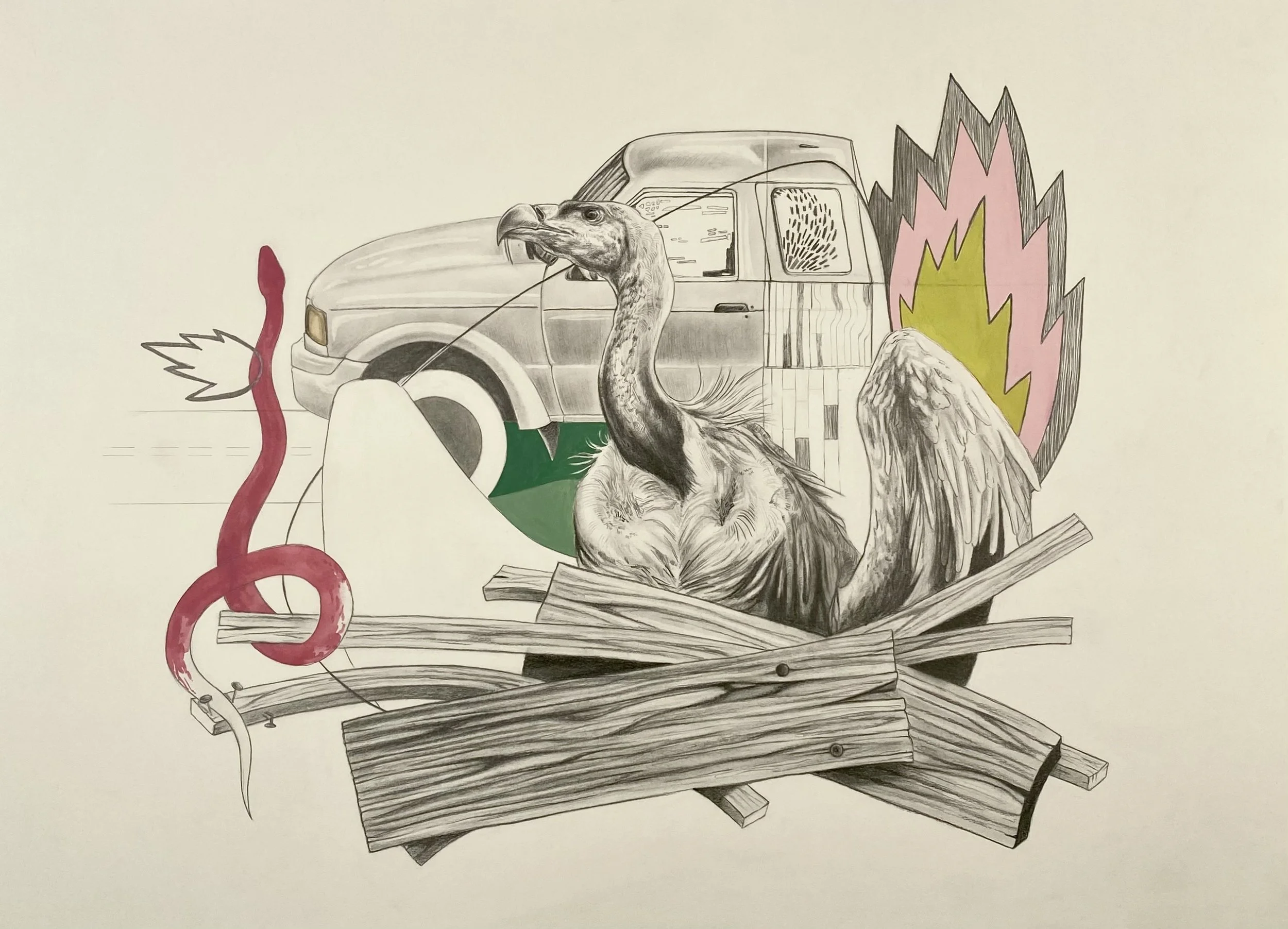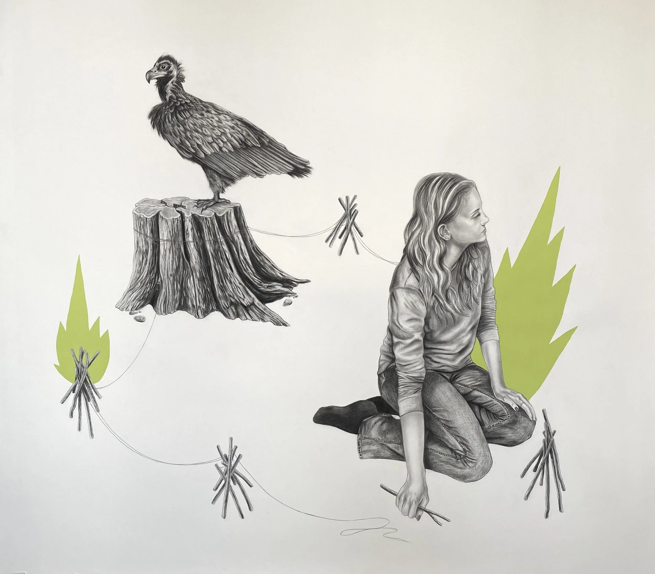 I had the opportunity to present a solo senior exhibition, Between Fire, in the Clara M. Eagle Art Gallery at Murray State University. This collection, developed over the span of a year, explored the fragility of ecosystems in a consumerist society and the anxiety surrounding their decline. It featured large-scale graphite drawings, medium-sized screen prints, and a ceramic installation. I gave an artist talk during the opening reception, and the exhibition remained on display for three weeks.